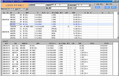 소재번호관리코일대장별추적현황, 품번번호추적현황, 소재번호상세현황